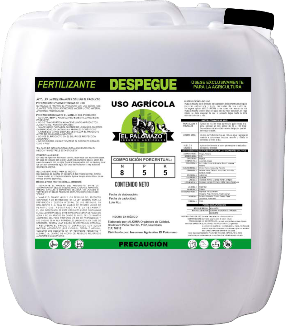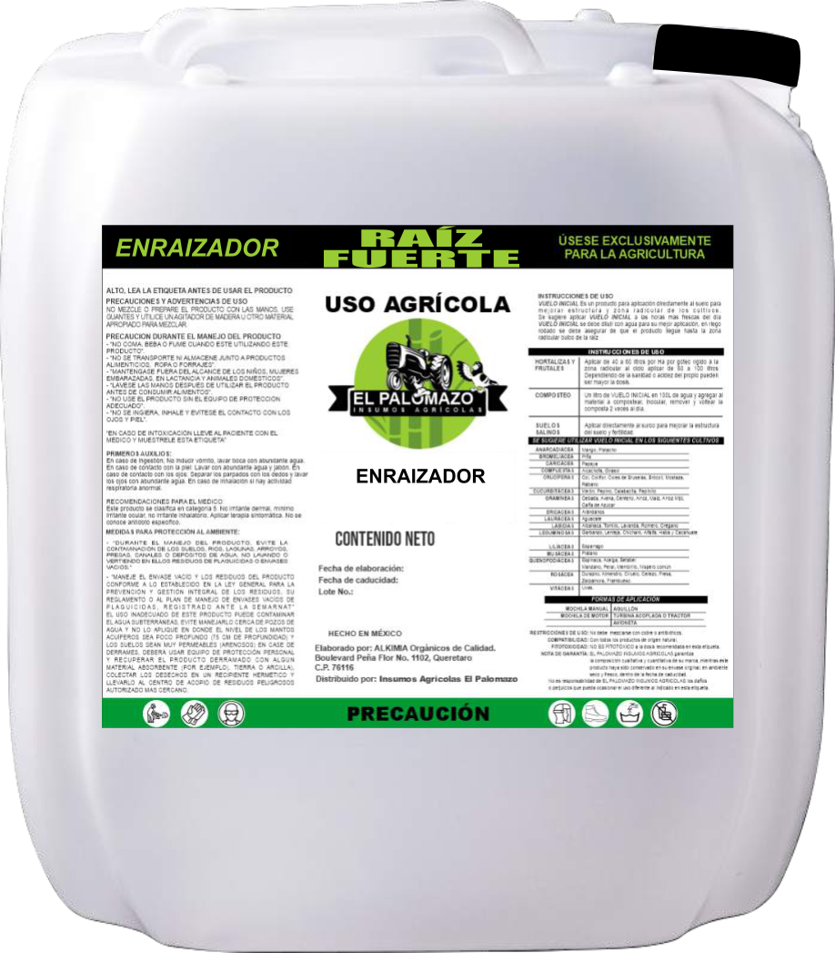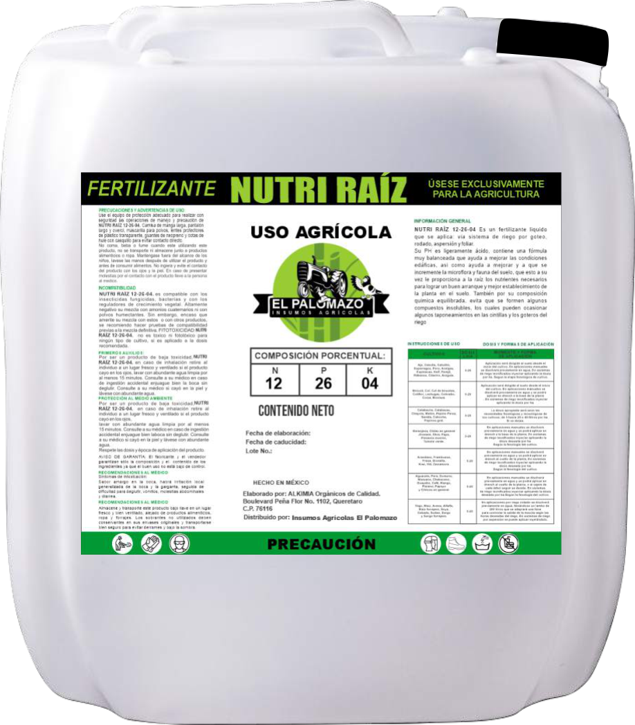 Formulación líquida diseñada para desarrollo de cultivo. Mejora la absorción de nutrientes a través de las hojas y raíces.