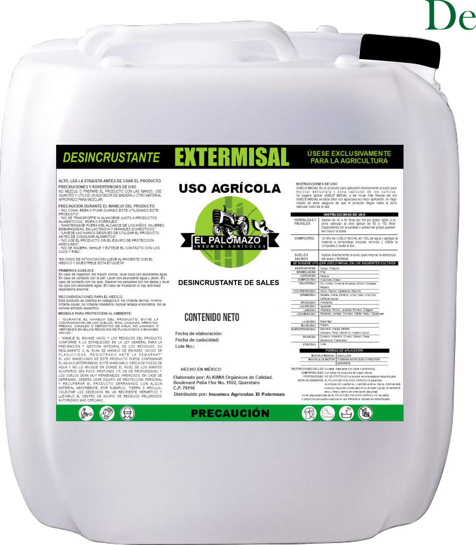 Desincrustante de sales en exceso, que evita el taponamiento de goteros y cintilas de riego.