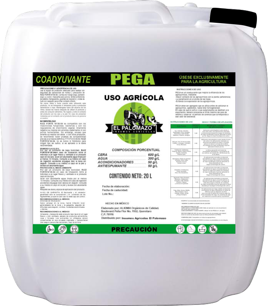 Coadyuvante que mejora la eficiencia de los agroquímicos, para tener mayor contacto con la planta (adherencia) y evita la evaporación de los mismos.
