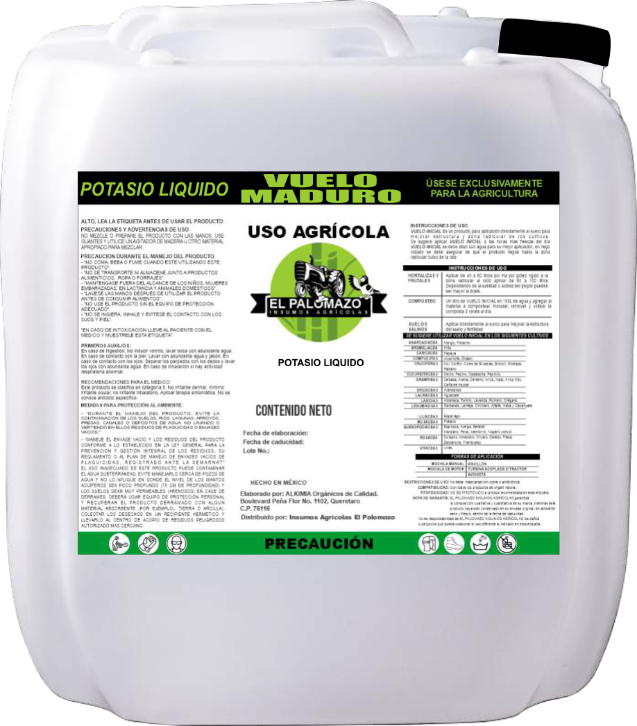 Potasio líquido concentrado que permite la rápida absorción y translocacion del potasio para potenciar la síntesis de azúcares y pigmentos del fruto.